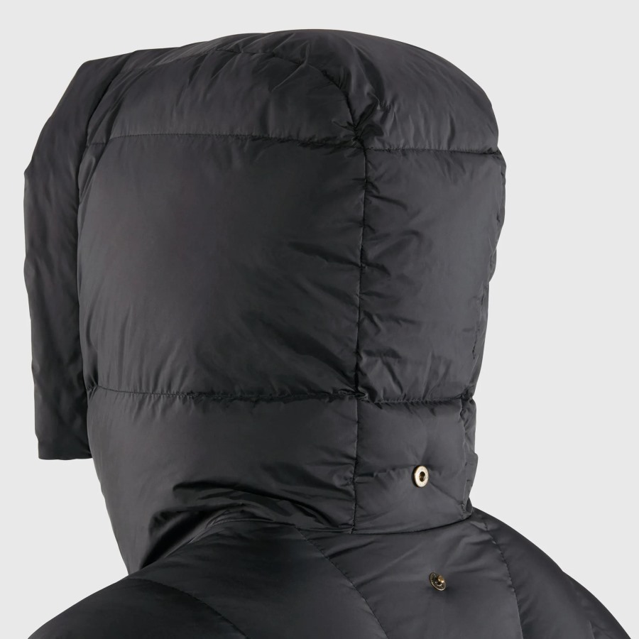 Light version of the classic Expedition Down Jacket from 1974, here with stitch-through construction and 35% less down to suit milder winter climates. The model is also 8 centimetres shorter. Otherwise exactly like the original: generous hood, yellow adjustment cords and spacious pockets. Reinforced with synthetic padding over shoulders to resist moisture and pressure.