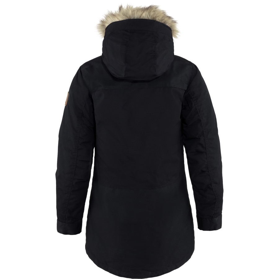Warm and durable down jacket with a traditional, long cut. A classic, long model in hardwearing G-1000 Eco with extra durable G-1000 HeavyDuty over the shoulders and rear. Perfect for low-intensity winter activities in really cold temperatures. Two large chest pockets with zippers and two top-loading pockets lower down, plus an inside pocket and mesh storage pockets. Drawcords at the waist and hem, and sleeve cuffs that are adjusted with Velcro. This is an updated version of Fjällräven's classic parka, now made with sustainable fabrics and improved features and fit.