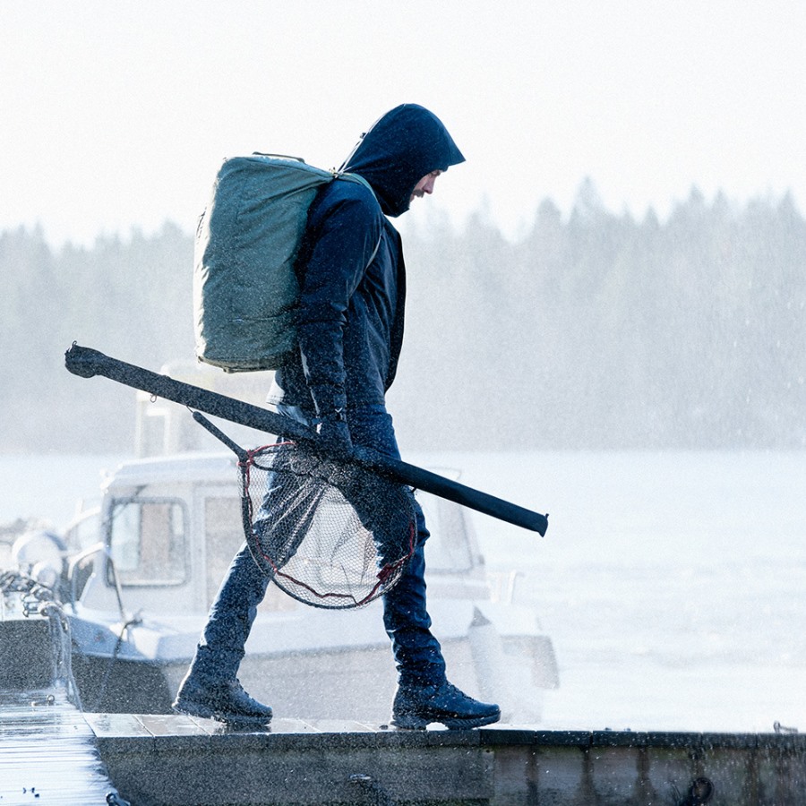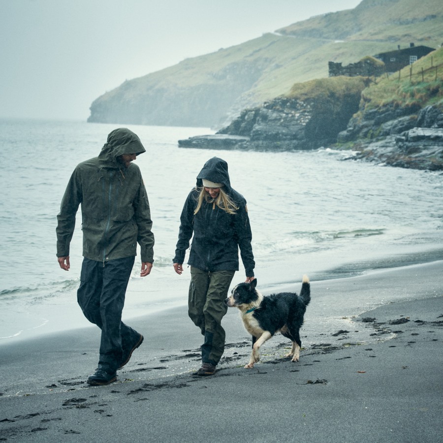 Wind and water-resistant three-layer shell trousers for year-round use in changeable weather conditions. Made from stretchy Eco-Shell for high performance and the lowest possible environmental impact. The fabric is hardwearing at the same time as it follows body movements and ventilates out moisture that builds up inside when you are active. A perfect choice for trekking and summit touring in difficult terrain the minimalistic design makes moving forward easier while you have complete protection from the elements. The cut is carefully thought through and pre-shaped knees and rear give maximum freedom of movement. The cut is adapted so they can be worn over a pair of trekking trousers made from G-1000, for example. Long two-way water-resistant zippers at the sides release excess heat and make putting on/taking off easy. The waist has a velcro adjustment at the side and a belt with an easy-to-handle flat buckle that sits well under a climbing harness or backpack hipbelt. Two pockets with zippers keep small items close at hand. Cordura reinforcements at the leg endings and on the inside lower legs protect against wear from boots and crampons. At the bottom there is a button and a hidden drawstring to adjust the width of the legs. Eco-Shell is a waterproof, breathable and sustainable hardshell fabric that is treated with fluorocarbon-free impregnation. Eco-Shell is made from recyclable polyester (both recycled and new), and all emissions during production and transport are climate compensated.