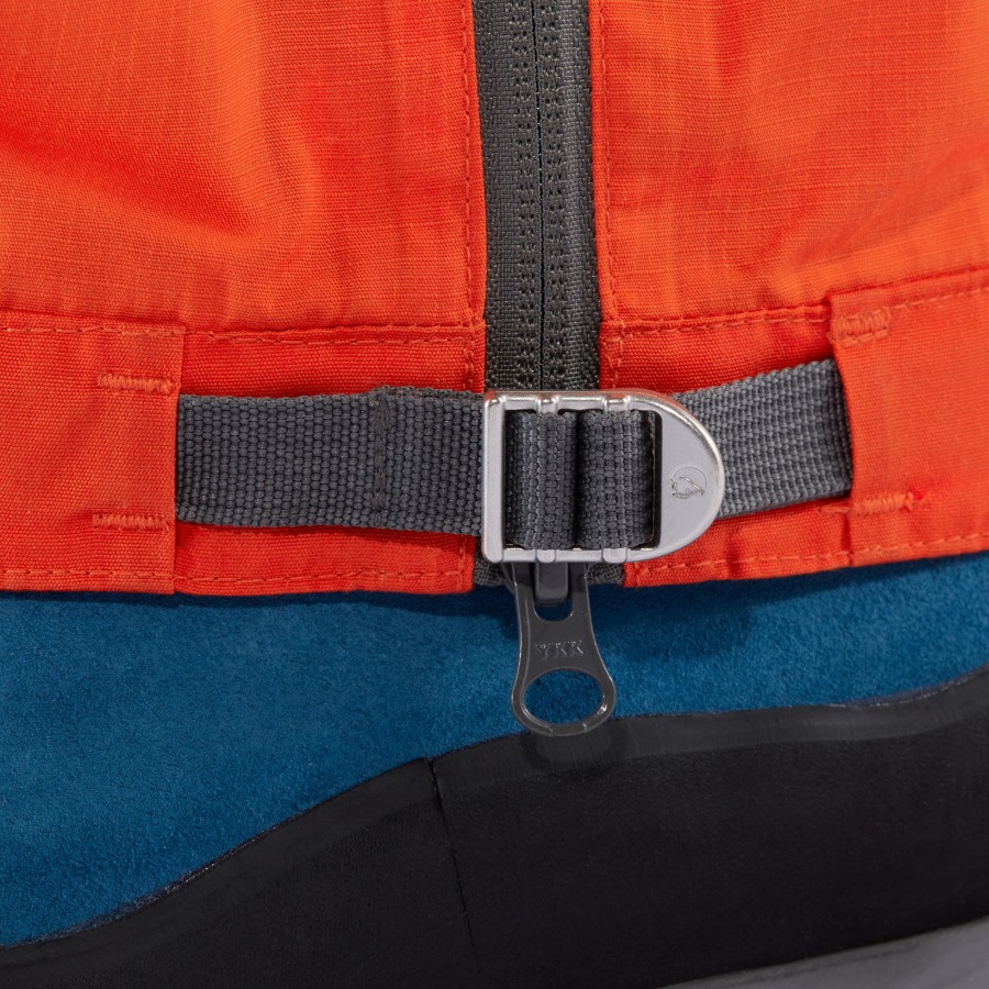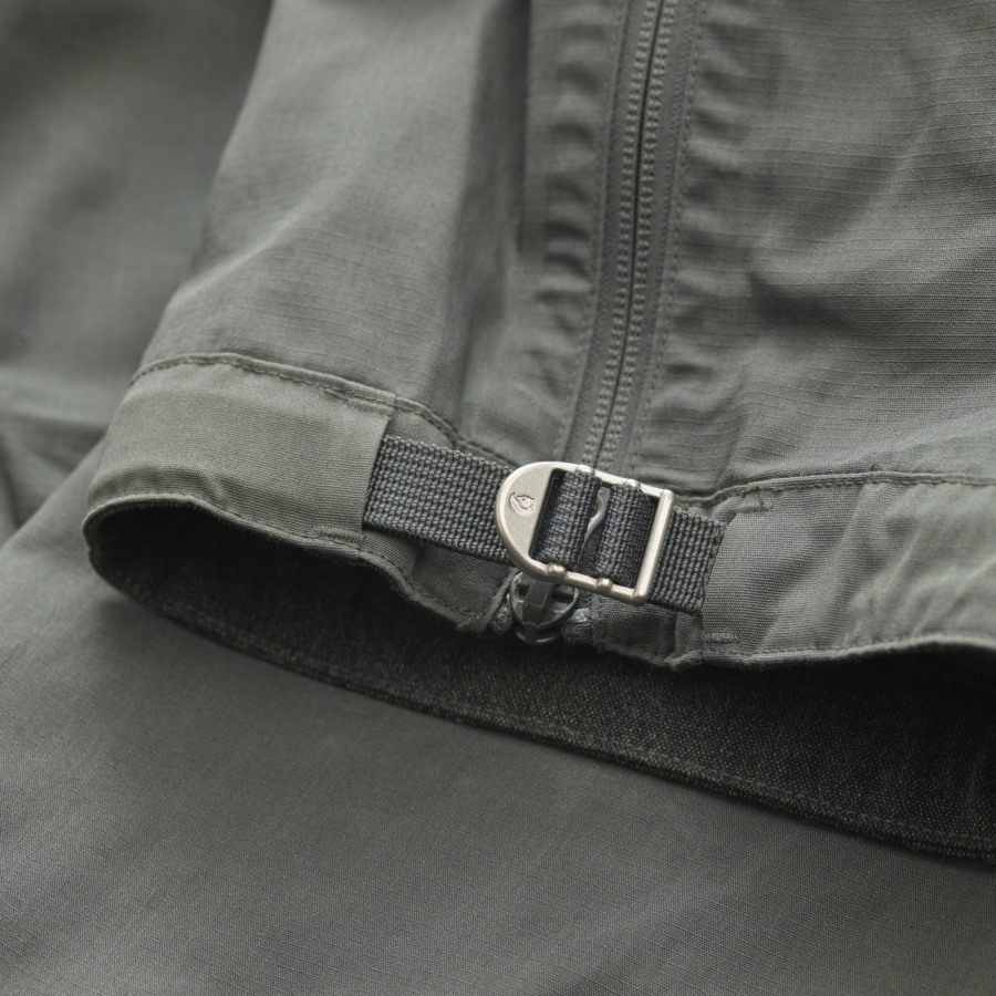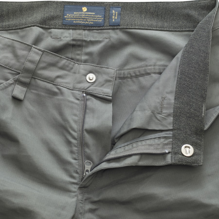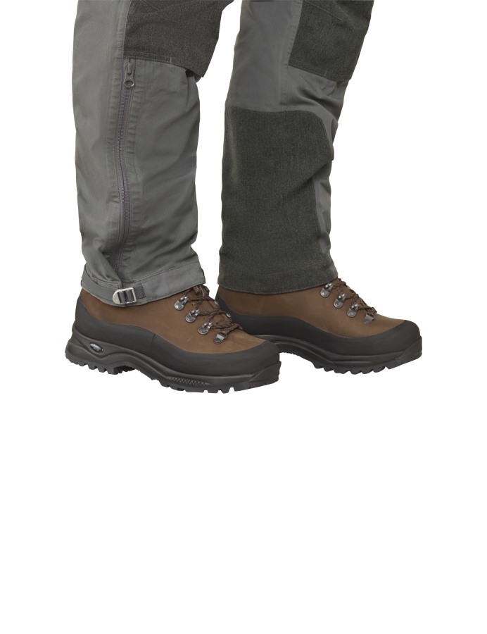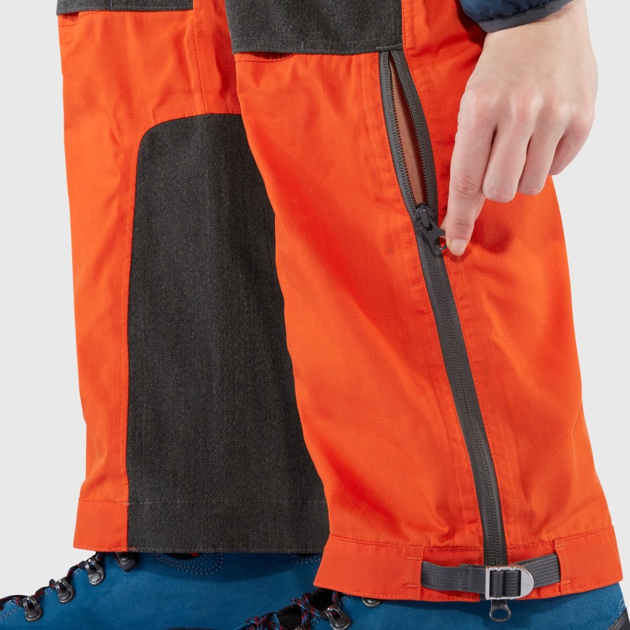 Technical outdoor trousers for unlimited freedom of movement in steep terrain. Light, strong material and innovative taping give trousers that are both durable and pliant. Their excellent breathability makes them perfect for strenuous activities, all year round. Light, strong and water-resistant G-1000 Lite Eco. 65% recycled polyester, 35% organic cotton. Double layers of G-1000 Eco over the rear. Reinforcements in aramid-based Corylon. Technical, articulated cut. Taped seams. Ventilation zippers from the hips to knees. Zippers in the lower sides for easy putting on/taking off. Zippered leg pockets. Two hand pockets. Equipment loop at the waist. Openings for kneepads (an accessory). Adjustment straps at the leg endings. RECCO reflector. Impregnated with Greenland Wax.