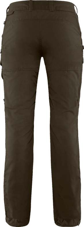 Durable trekking trousers with technical features, made from wind and water resistant G-1000 Eco. The model is based on our best-selling Vidda Pro but has improved ventilation options and a new, slightly slimmer fit that still has great freedom of movement. The buttoned strap adjustments at the leg endings can be removed and there are numerous practical pockets and details - such as a knife pocket on the right-hand leg and a loop for an axe on the side of the waist.
