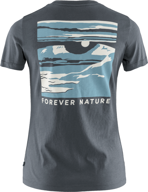 Comfortable short-sleeved t-shirt in organic cotton. Print of Lake Torneträsk on the back - the lake by the northern end of the Kungsleden trail in northern Sweden. There is also a small logo printed on the chest.
