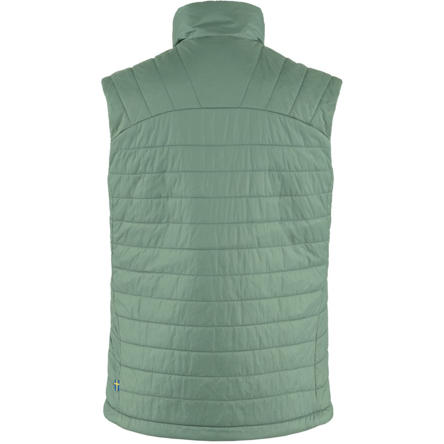Light and packable vest for trekking and various outdoor escapes. A smart insulating garment that is perfect as a mid-layer on chilly summer evenings, when trekking at high altitudes or over a fleece or t-shirt to keep your core warm. Made from pliant recycled polyamide with synthetic padding that keeps its warming properties even when damp. Part of Fjällräven's Expedition Series.