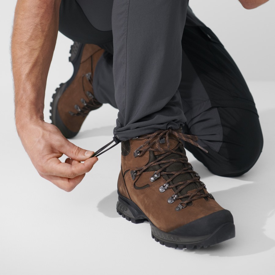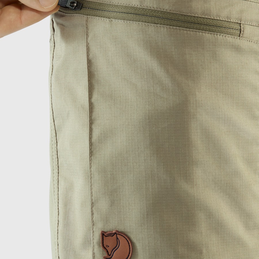 Our award-winning Abisko Midsummer Trousers, here with zip-off functionality. Made of G-1000 Air Stretch (organic cotton and partially recycled polyester) and pliant stretch fabric (partially recycled polyester). Both fabrics are quick drying with excellent breathability. Perfect for trekking and travelling as can can easily be converted from shorts to long trousers when you need protection from the sun and rough terrain. Trouser length comes in a 34".